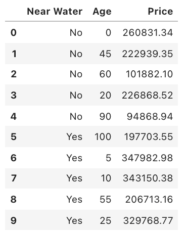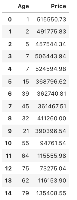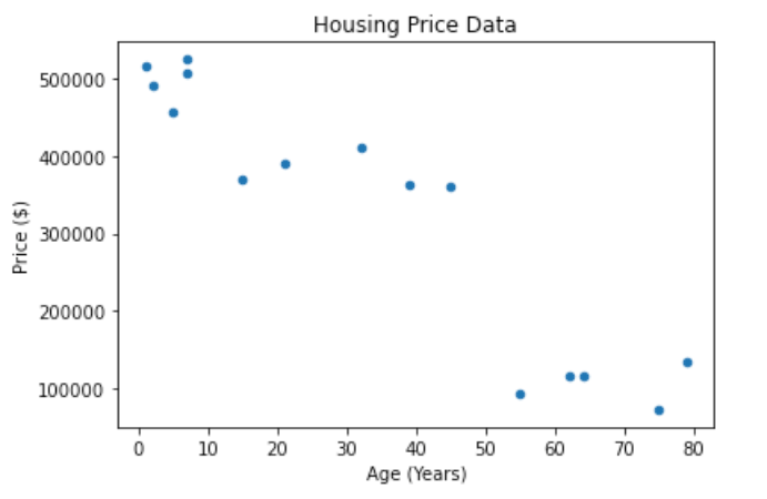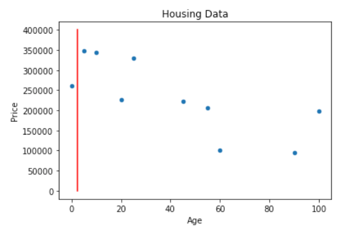 Consider the housing data below, where we are using the ‘Age’ to predict the ‘Price’ of a house.